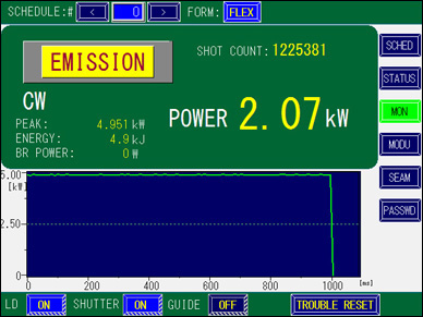 ENERGY:照射終了時に、照射開始から終了までのエネルギー積算値を表示。