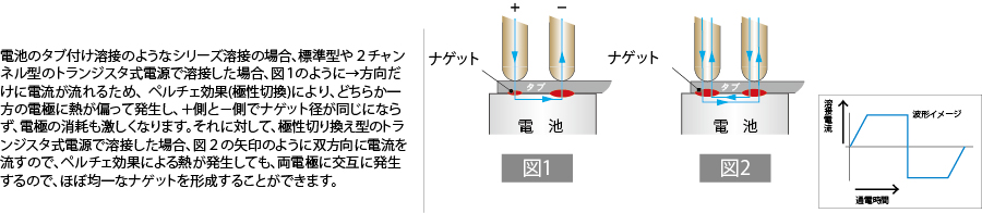 ペルチェ効果(極性効果)を解消し、シリーズ溶接のナゲット径を均一にできます。